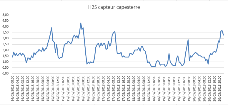 De haute lutte nous avons obtenu d’avoir un capteur fixe. Car les premiers mois, aucune capture quotidienne, celles qui étaient prises ponctuellement (et très souvent supérieures au taux dit ‘dangereux’ c’est à dire supérieure à 5 PPM) ne pouvaient être considérées comme significatives et servir de base à une quelquonque décision officielle.