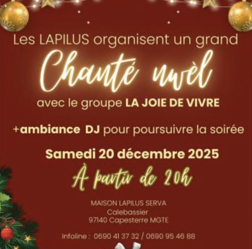 mme tous les ans les chanté nwèl sont des moments privilégiés de partage et de joie; Au fil des annonces vous trouverez ici les chanté nwèl 2025 sur l’île de Marie-Galante.