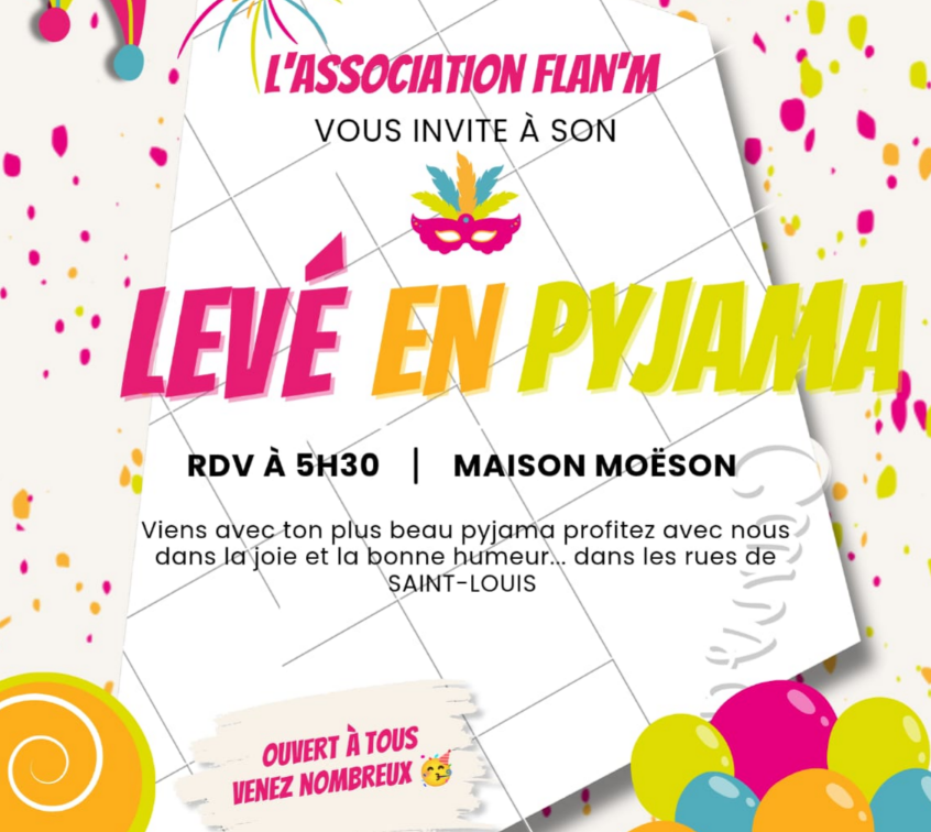 - MARDI 17 : 05h00 Levé en pyjama groupe FLAN’M à Saint-Louis « départ Melville brancourt »�14h30 Défilé des groupes à Capesterre « MARDI GRAS ».