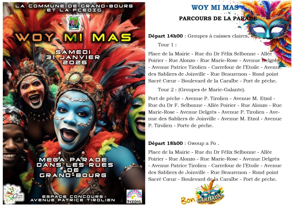 Dernières minutes avec Woy mi mas samedi 31, des RV Carnaval à Grand Bourg à ne pas manquer